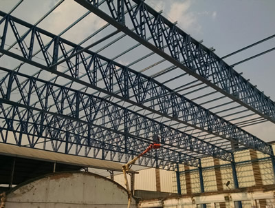 reforma de galpão: retirada de todas as telhas e substituição. Demontagem de estrutura metálica para montar em outro local Colocação e exaustores.